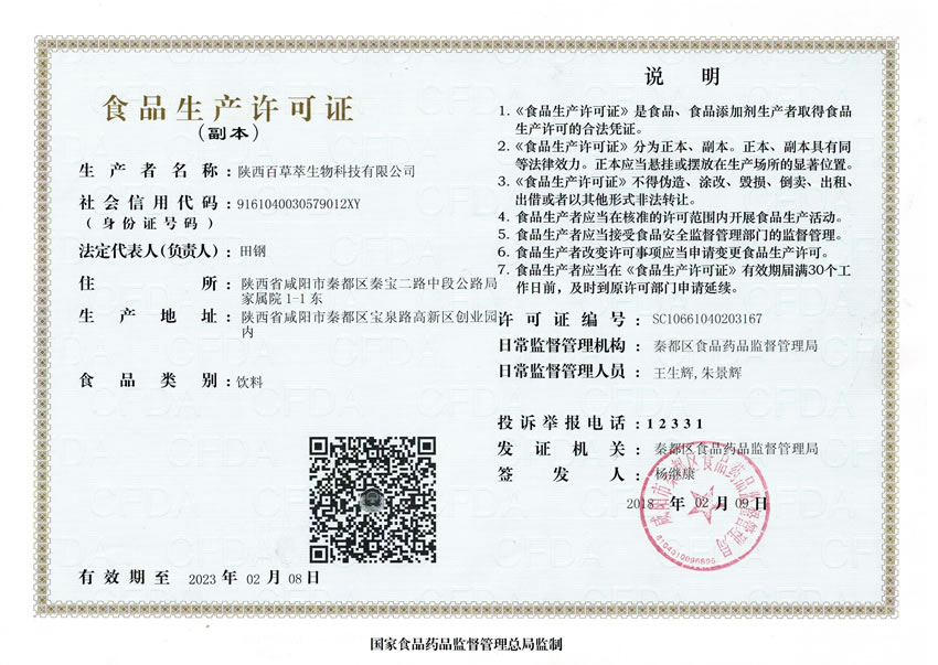 陜西百草萃生物科技有限公司,位于陜西省咸陽市秦都區(qū)濱河西路1號大秦御港城,公司成立于1996年,主要從事天然植物種植、研發(fā)、生產(chǎn)、加工、銷售為一體的高科技企業(yè)。主營醫(yī)藥原料、保健品原料、化妝品原料,精細化工原料。公司致力于人類健康保護事業(yè)“ 以科技為動力,以質(zhì)量求生存” 的本質(zhì),依托陜西高新科技技術(shù)人才和科研優(yōu)勢,已形成多學科、全方位、高層次的技術(shù)管理精英團隊。充分利用秦巴山區(qū)的天然藥物資源,歷經(jīng)多年發(fā)展為打造百草萃生物品牌奠定了基礎。